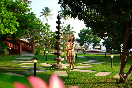 A serene tropical paradise. Nestled amid Kerala's backwaters, embraced by the Arabian Sea and towering Ghats. Golden beach, coconut palms, emerald backwaters, and crimson sunsets adorn this magical oasis.